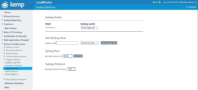 In the LoadMaster Syslog Options, we are sending the syslog outputs to the Logstash server, as shown in Figure 1.