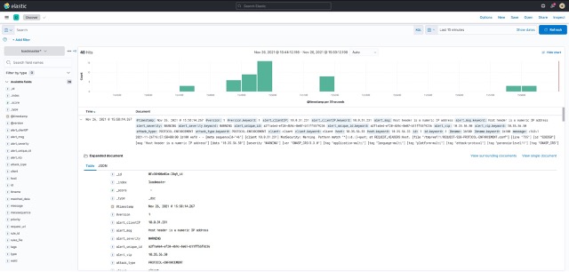 Now that I have WAF enabled on the Virtual Service and LogStash receiving, parsing, and forwarding events, I start to receive those parsed syslog events in Kibana as shown in Figure 8.