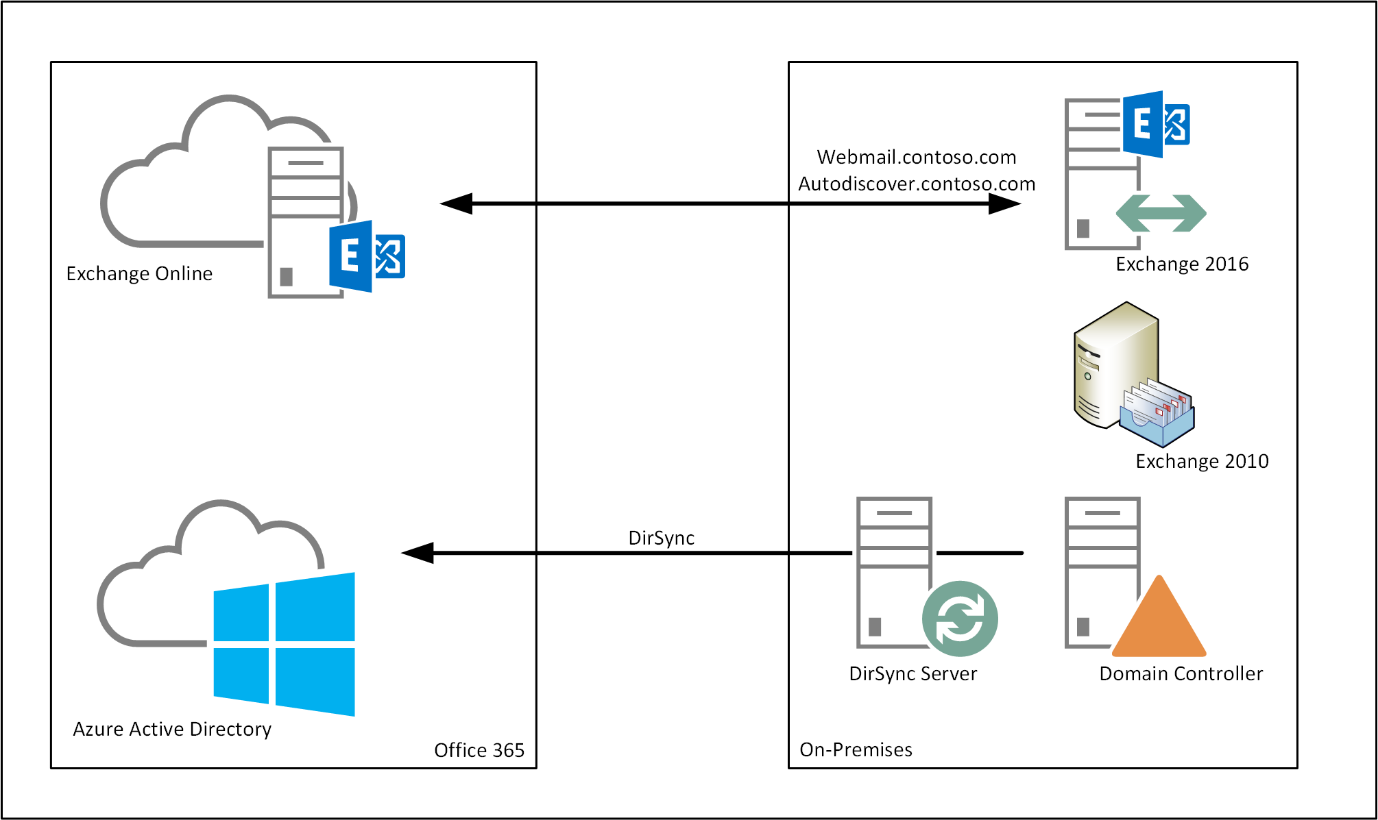 Sie können Exchange 2010 verwenden, um eine Hybridumgebung zu erstellen, aber die meisten Kunden implementieren heutzutage Exchange 2016, bevor sie eine Hybridumgebung erstellen. Das ist in Ordnung, wenn Sie feststellen, dass Sie sich auf halbem Weg zu einer Exchange 2016-Migration befinden, wenn Sie diesen Weg gehen.