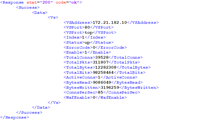 This returns XML from the LoadMaster that would look something like this excerpt (irrelevant tags excluded):