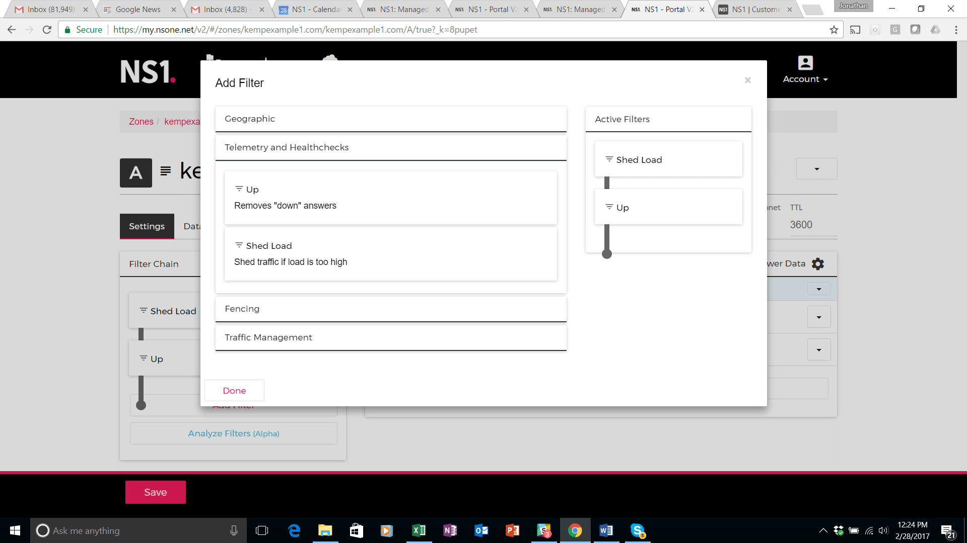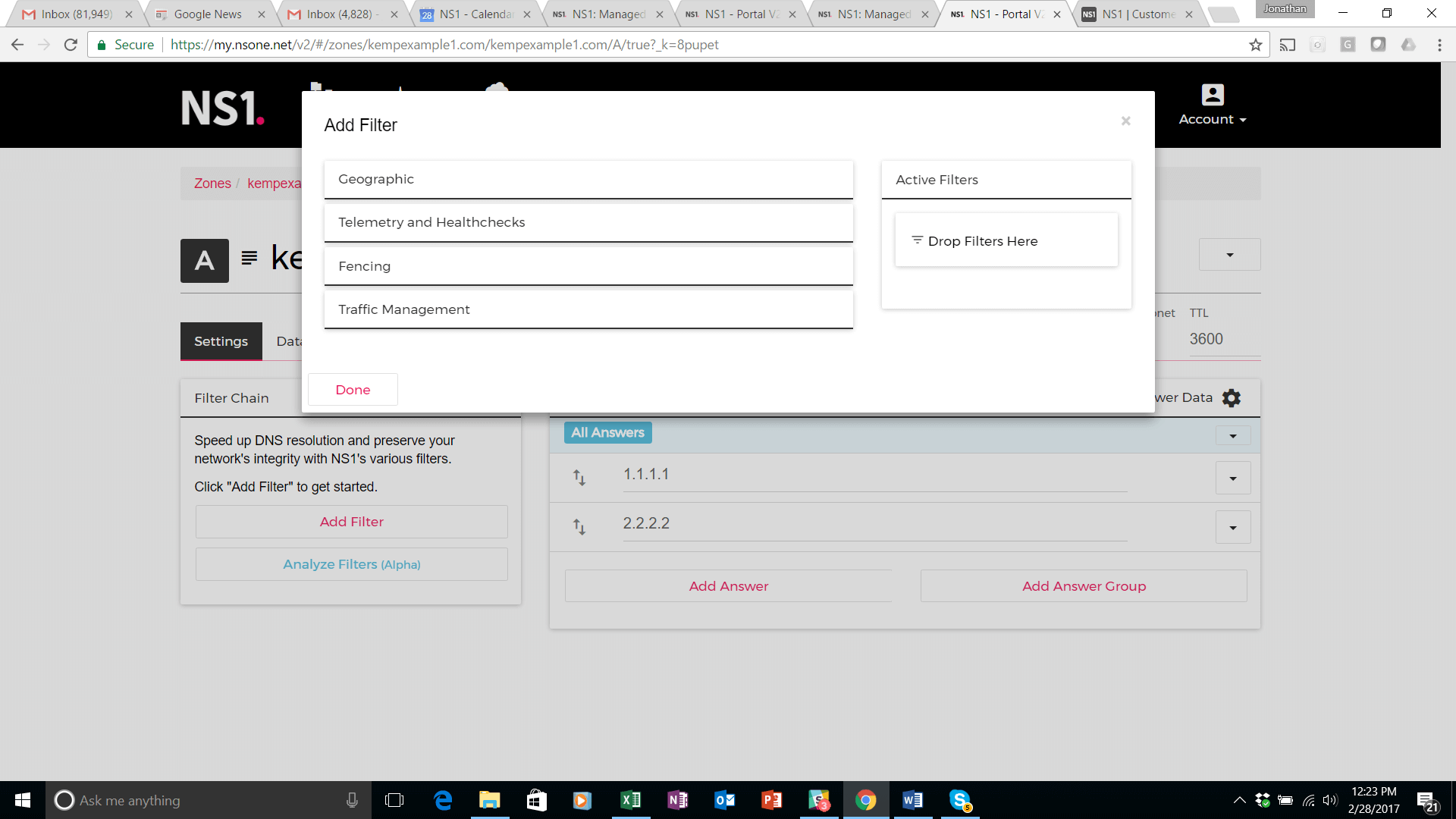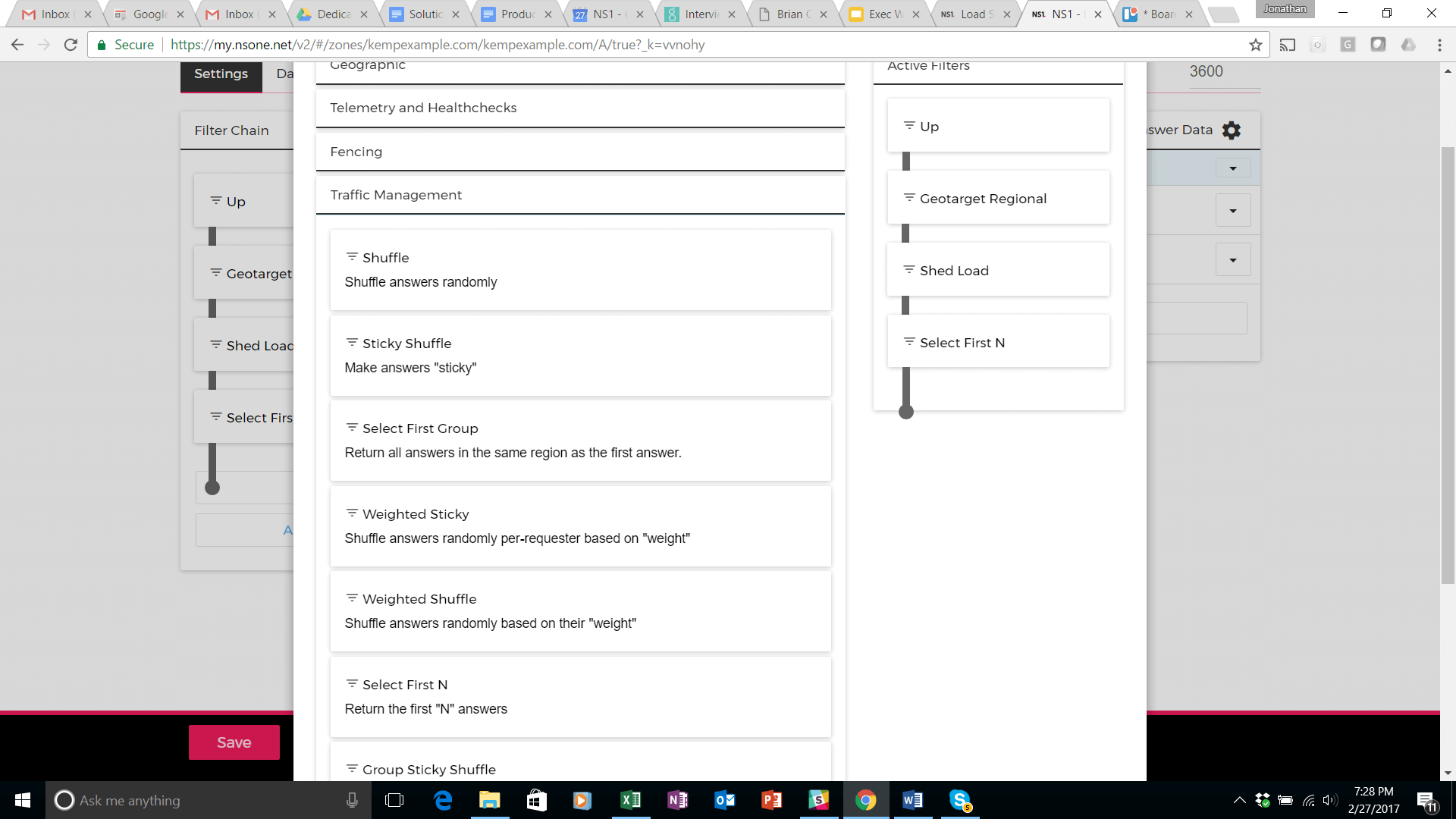 In this final step of the set-up procedure, the NS1 filter chain is configured to steer traffic to these data centers in accordance with the traffic management logic described at the beginning of this solution guide.