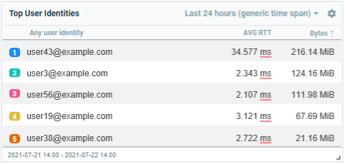 For example, you can now configure a widget that shows the user identities responsible for the highest level of network traffic, as in this example: