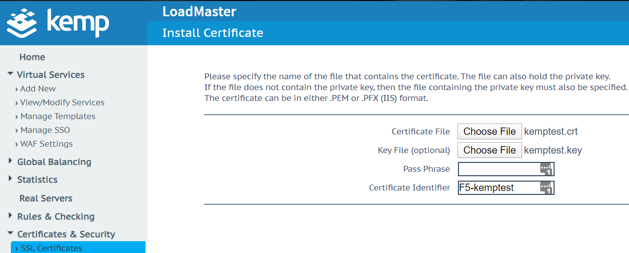 Navigieren Sie auf Ihrem LoadMaster zu Zertifikate & Sicherheit > Zertifikat importieren.