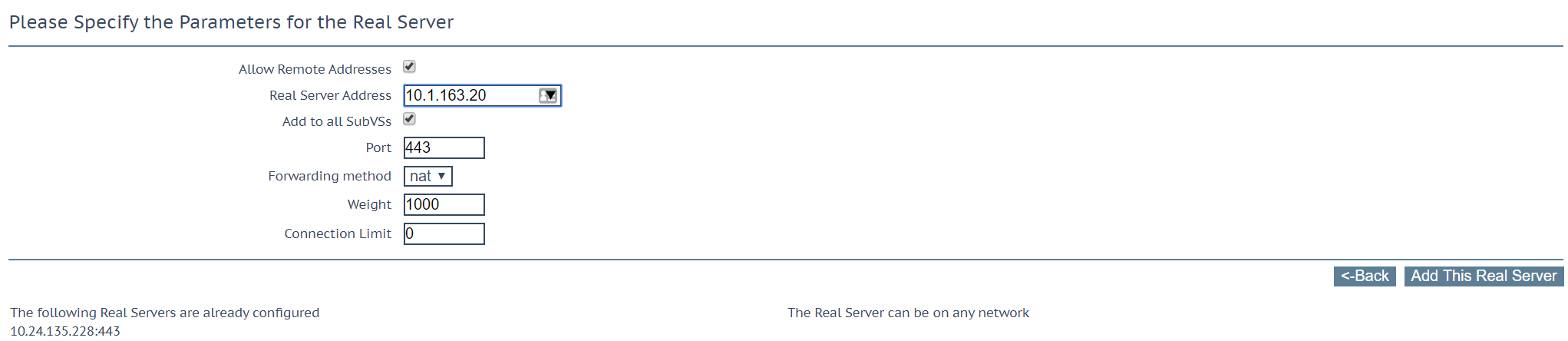 Navigieren Sie zu Virtuelle Dienste > Ändern Sub VS > Real-Server > Real-Server hinzufügen