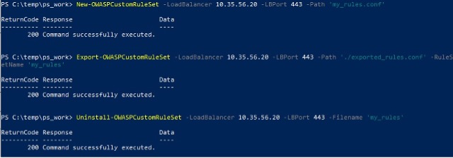 | Export-OWASPCustomRuleSet | Export/Save locally a custom rule file from the LoadMaster |