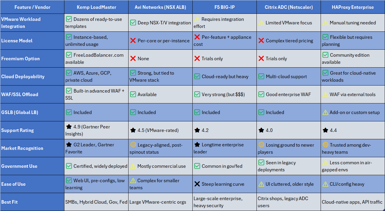 Comparison Matrix: Kemp LoadMaster vs Avi vs Other Major Load Balancers