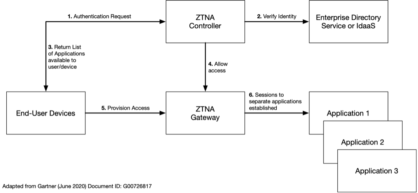 ZTNA solutions closely follow the SDP specification created by the Cloud Security Alliance (CSA). The diagram below outlines the Endpoint- Initiated approach.